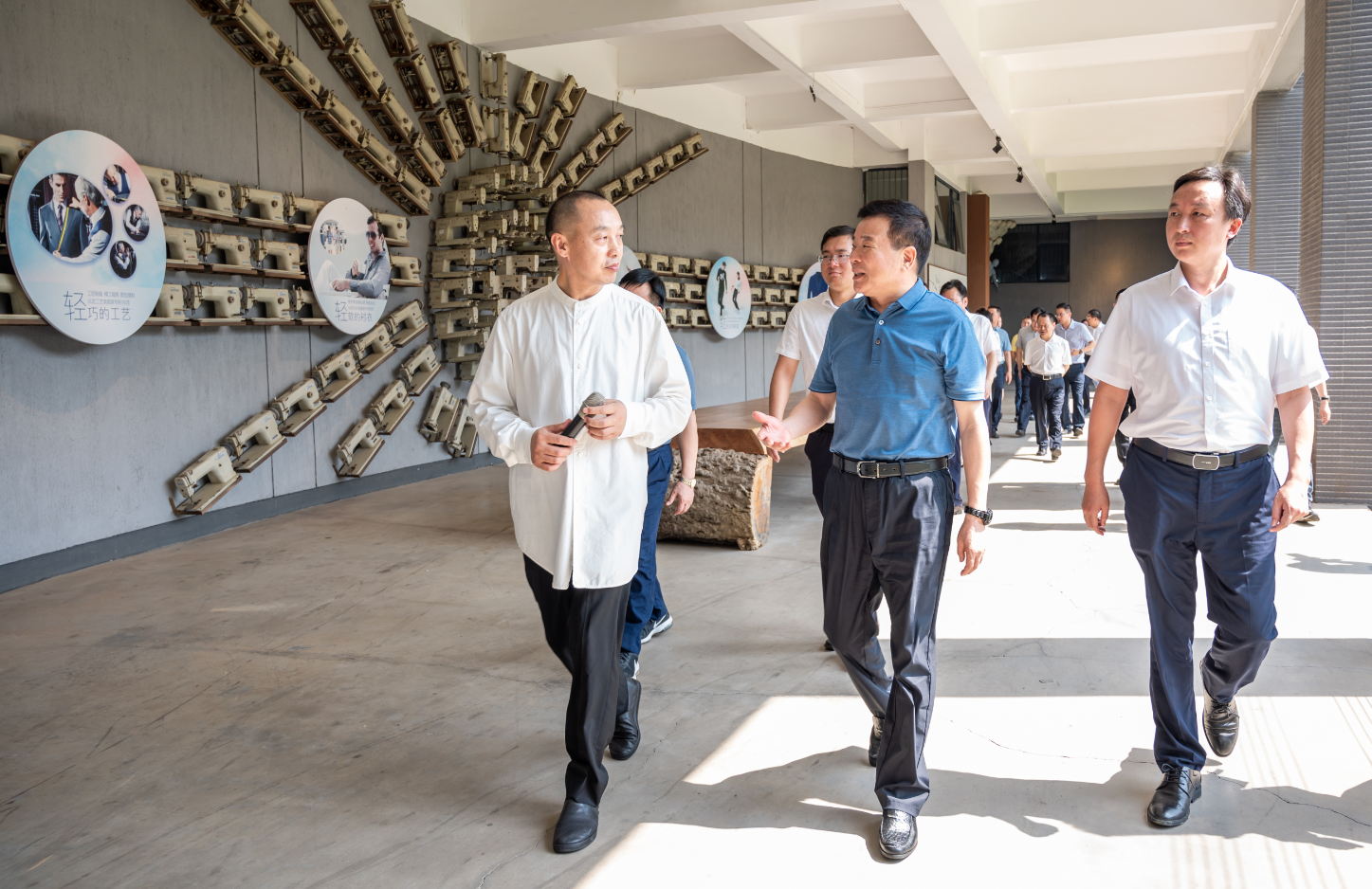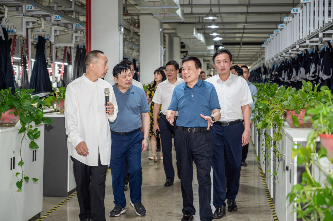 6月8日,湖南省副省長陳飛、副秘書長周義祥、湖南省工信廳副廳長黃寶林、湖南省科技廳副廳長魯先華等領(lǐng)導(dǎo)一行蒞臨圣得西集團考察指導(dǎo)工作,在圣得西集團羅文亮董事長的帶領(lǐng)下考察了圣得西產(chǎn)業(yè)園區(qū)智能工廠、企業(yè)文化長廊、全品類服裝展廳以及產(chǎn)品研發(fā)中心,現(xiàn)場體驗了抗菌、防水、抗皺、蓄熱等系列新產(chǎn)品。